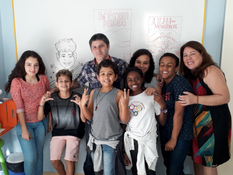 Em Volta Redonda/RJ, as atividades aconteciam em um espaço apropriado, na sede administrativa da Criativa Leitura, com capacidade para 10 estudantes por turma.